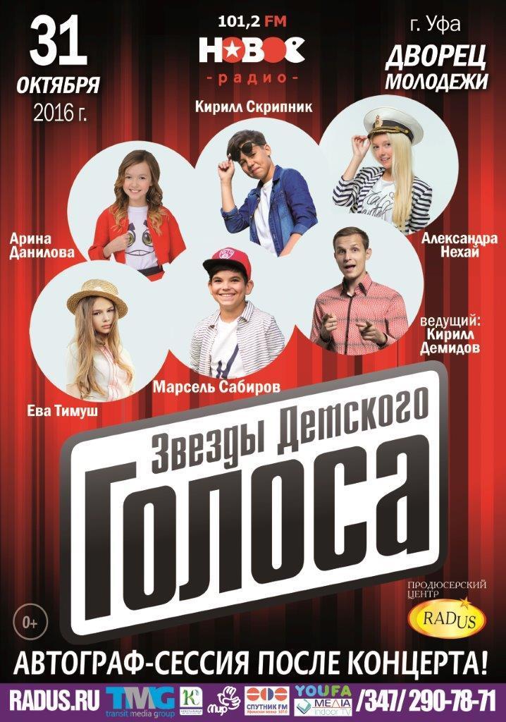 Марсель Сабиров, Ева Тимуш, Кирилл Скрипник, Арина Данилова и Александра Нехай, эти юные звезды телепроекта «Голос. Дети» представляют уникальный концерт в Уфе.