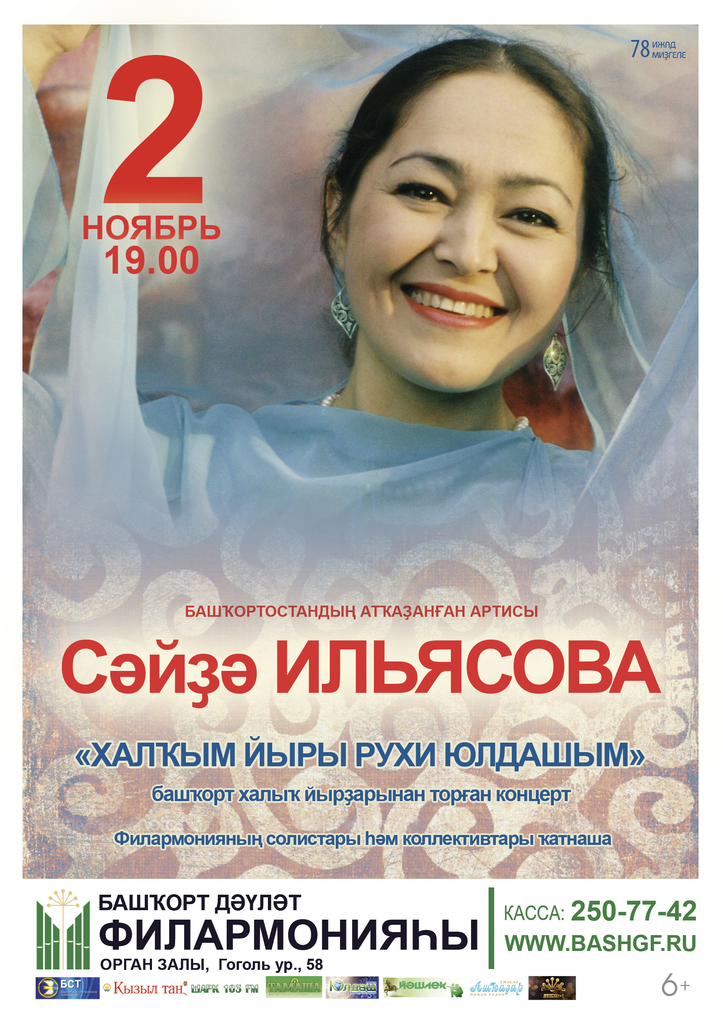 Известная певица, солистка музыкально-литературного лектория, заслуженная артистка РБ Сайда ИЛЬЯСОВА приглашает на свой сольный концерт «Песня моего народа — мой духовный спутник».