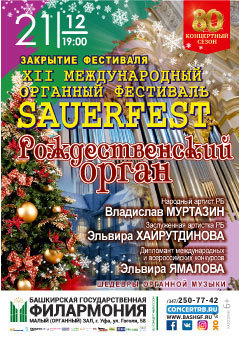 21 декабря, в преддверии западного Рождества, программой «Рождественский орган» мы закрываем XII Международный органный фестиваль «SAUERFEST». В этом году честь завершить формум выпала уфимским органистам: народному артисту Башкортостана Владиславу Муртазину, заслуженной артистке Башкортостана Эльвире Хайрутдиновой и дипломанту международных и всероссийских конкурсов Эльвире Ямаловой.