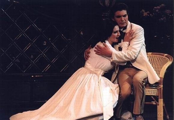 После ужина веселые гости переходят в танцевальную залу, Виолетта же хочет отдохнуть, пока пройдет ее мимолетное недомогание. Жермон остается с Виолеттой и признается ей в своей любви. «Дама с камелиями» не верит в серьезные чувства, но пылкость юноши ее умиляет. Она протягивает ему камелию. Когда лепестки цветка опадут — уже завтра — она с удовольствием увидит его вновь...