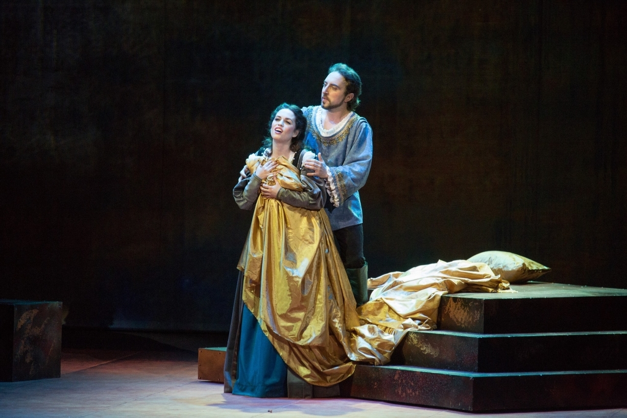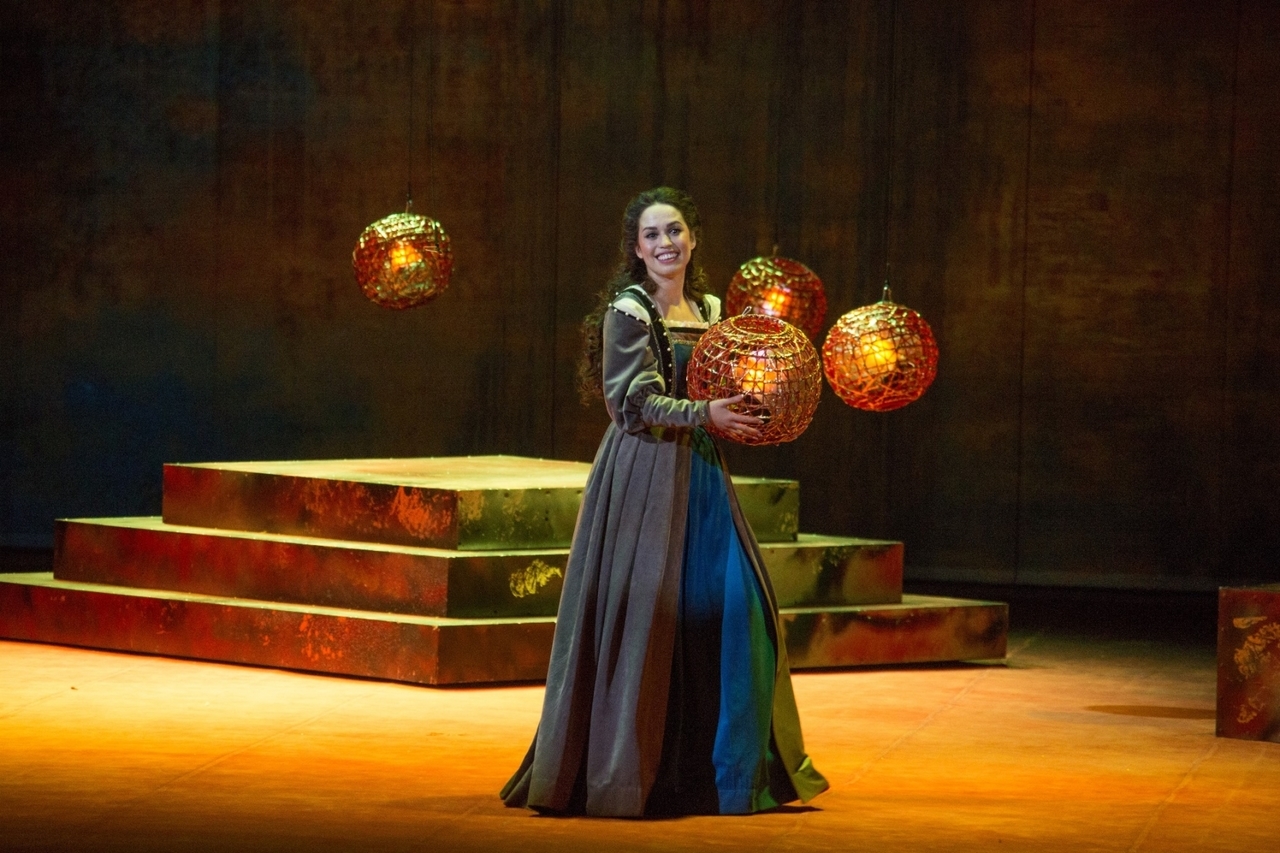 Бал во дворце герцога. Властитель Мантуи развлекается с придворными. Он взволнован: образ прекрасной незнакомки, которую он встретил в одном из храмов, не дает ему покоя. О своем новом увлечении герцог рассказывает приближенному Борса.