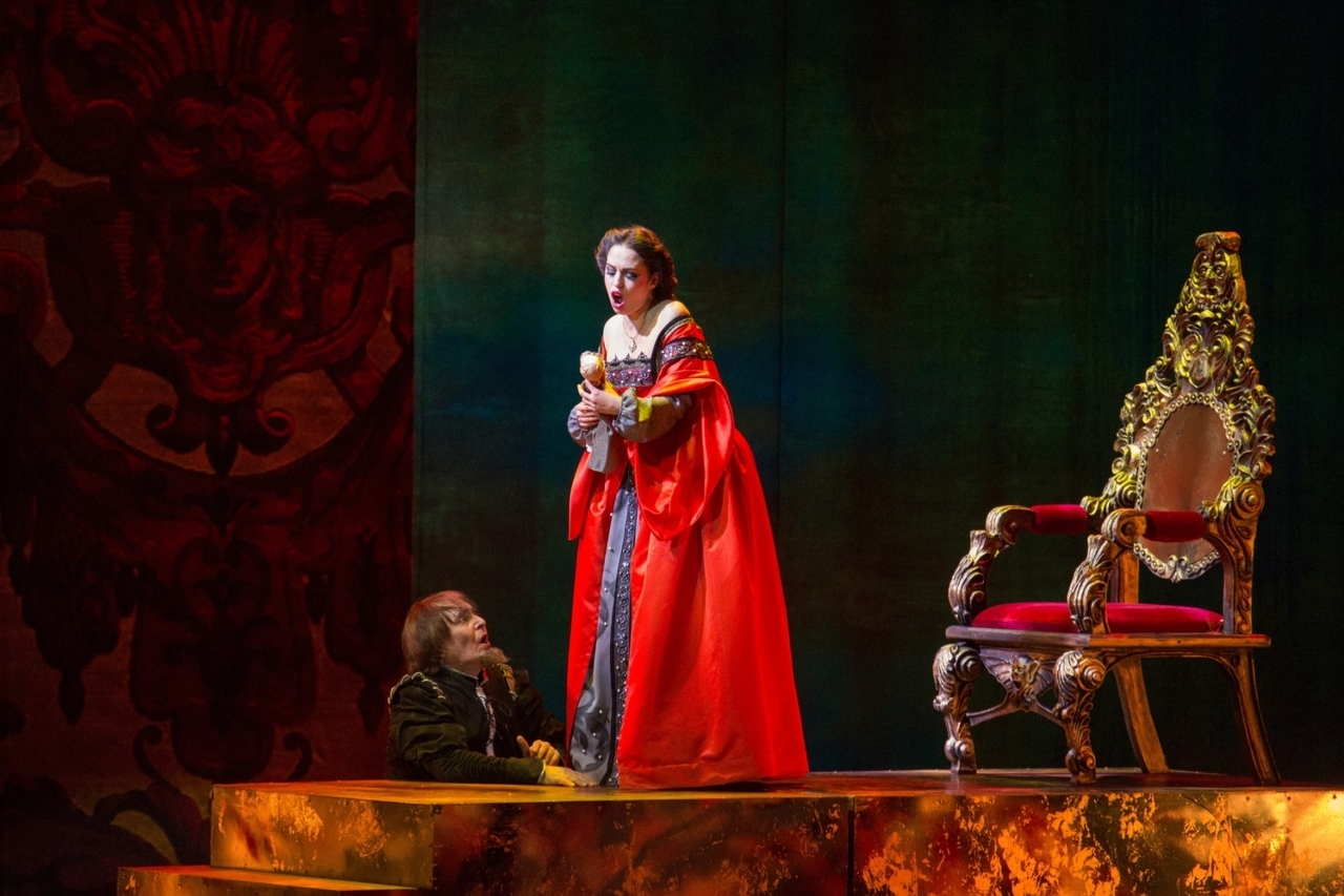 Появление в зале графини Чепрано рассеивает печаль герцога. Очарованный красотой графини, он клянется ей в любви. Ухаживания герцога замечают придворные, среди которых и граф Чепрано. Шут герцога, Риголетто, зло издевается над графом Чепрано и советует герцогу нынче же ночью похитить прелестную графиню; взбешенный Чепрано клянется отомстить Риголетто.