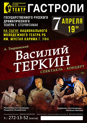 Стерлитамакский театр предлагает интересное сценическое решение известного произведения. В спектакле нет главного героя. Тёркин многолик, это образ собирательный. Всё по Твардовскому: «По уставу каждой роте будет придан Тёркин свой"… Большой охотник жить, добрый малый, святой и грешный, что он нёс в душе своей?
