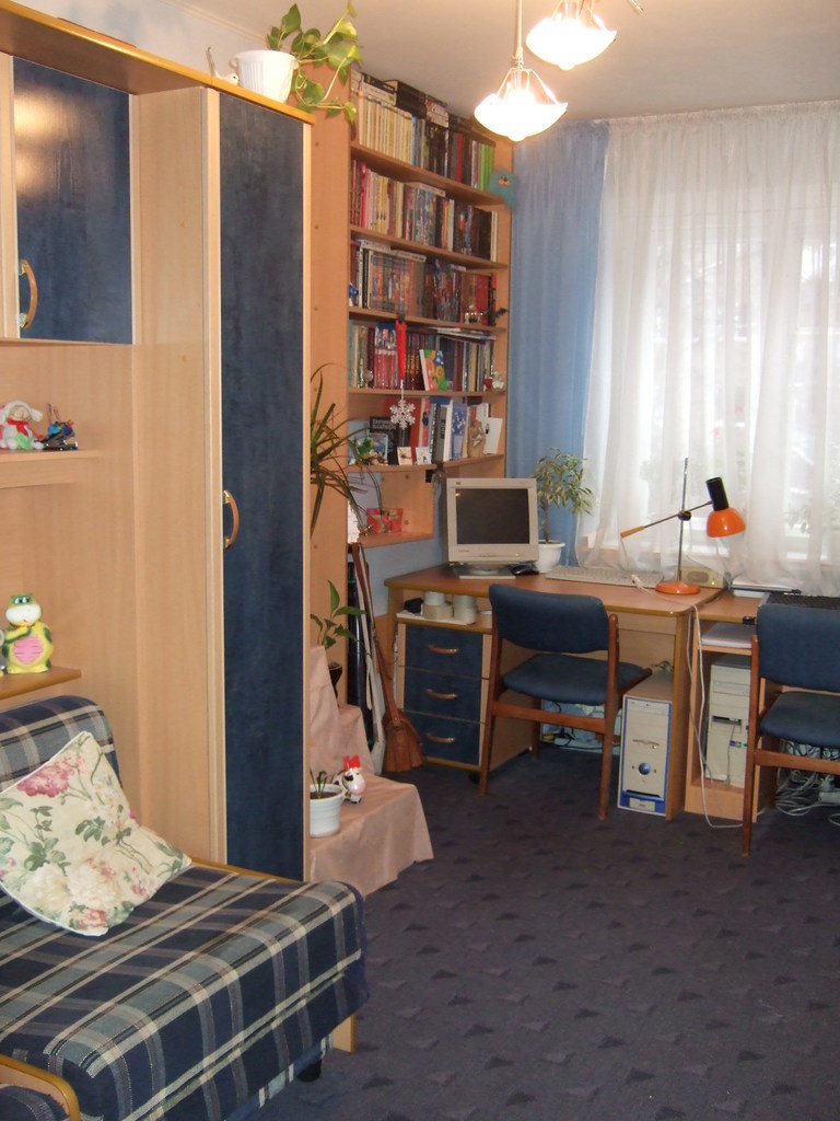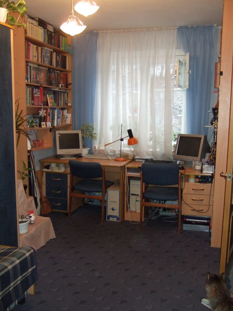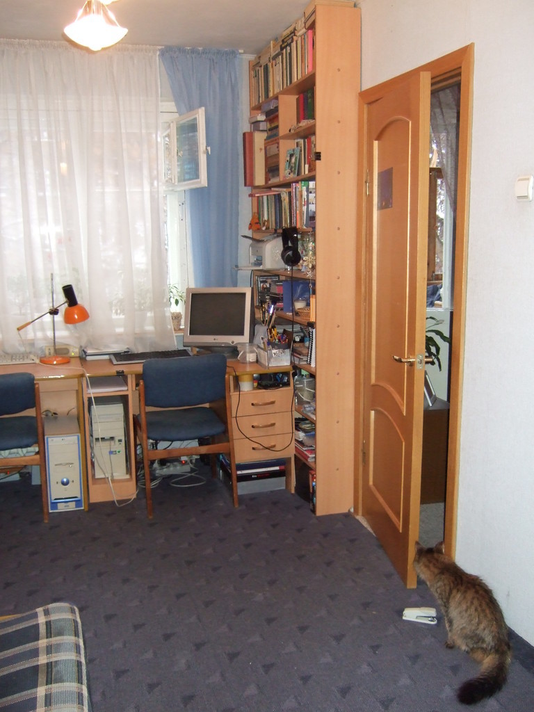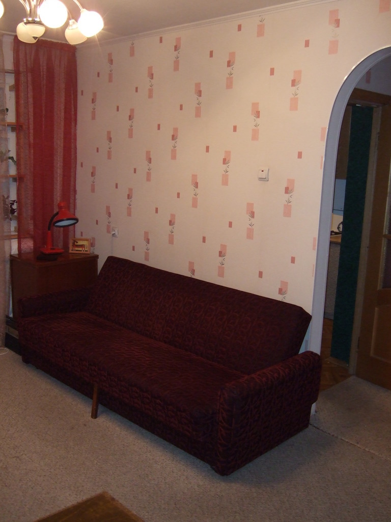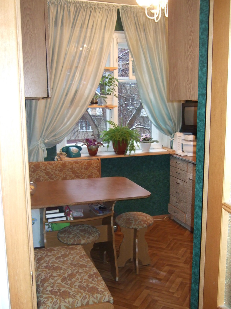 Окна выходят на тихий скверик между домами.