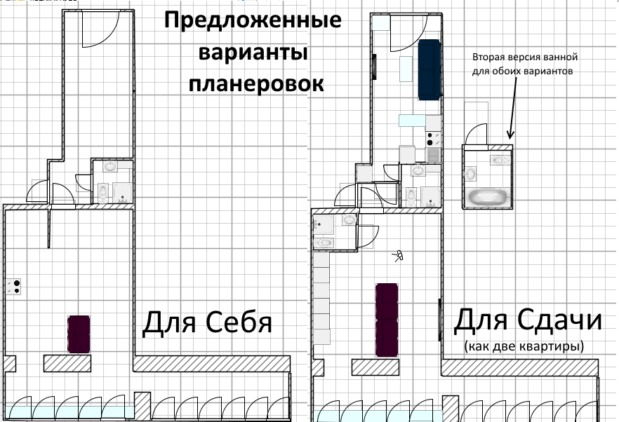 Прекрасная квартира как для семьи, так и для выгодной сдачи, особенно если поделить ее на 2 однушки (как на фото)