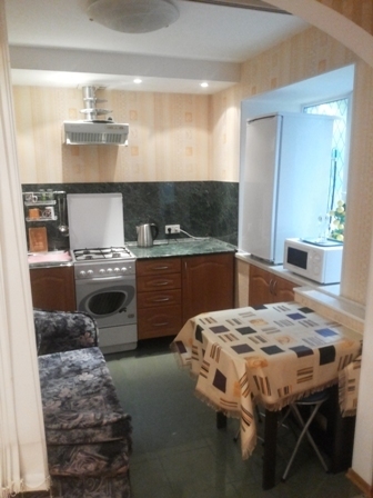 Со всеми удобствами: холодильник, СВЧ, газовая плита, TV кабельное, видеомагнитофон, утюг, фен.