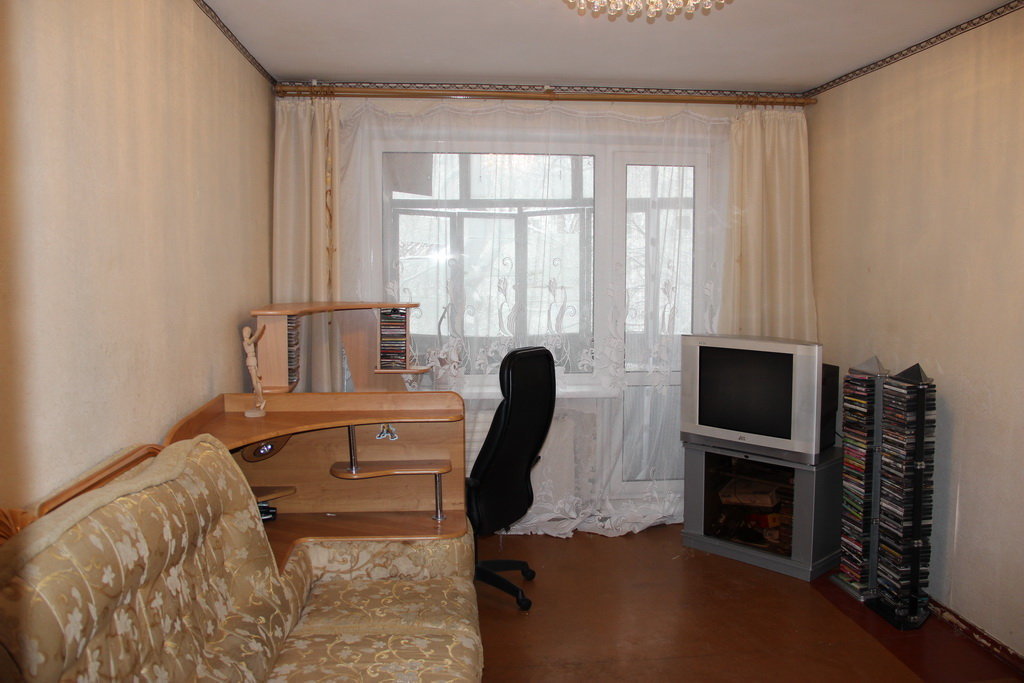 Квартира расположена на 2 этаже 9-этажного панельного дома. В квартире простая и удобная планировка, общая площадь 30,4 кв.м., в прихожей есть шкаф и небольшая кладовка, комната просторная и светлая 17 кв.м. с выходом на застекленный балкон, кухня стандартная. Состояние квартиры среднее: установлена металлическая дверь, все окна пластиковые, смонтирована система охраны, хорошие приборы освещения. Окна выходят во двор на Ю-В сторону.