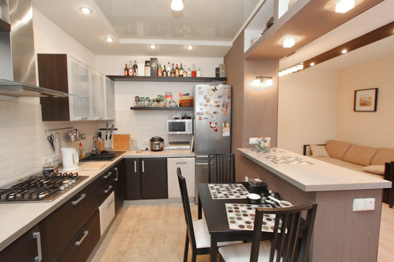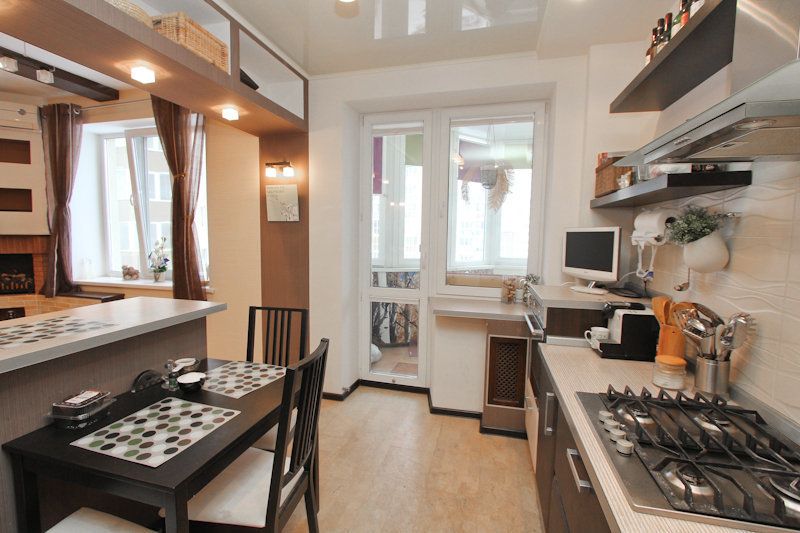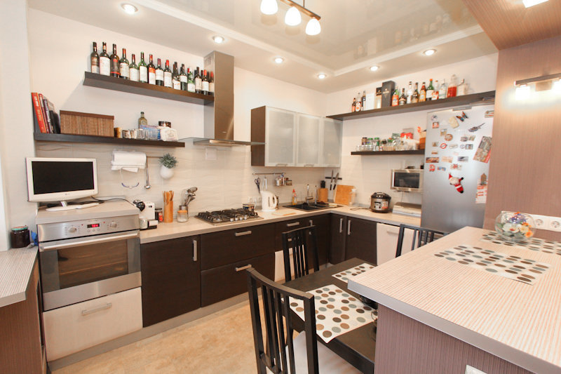 В столовой встроенный кухонный гарнитур (варочная поверхность, духовой шкаф, посудомоечная машина, вытяжка - фирмы «Hansa»).