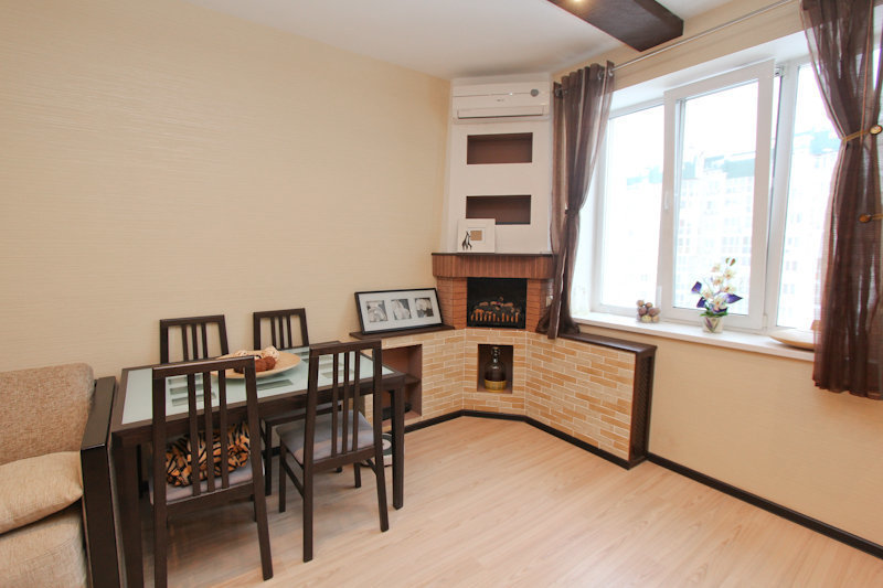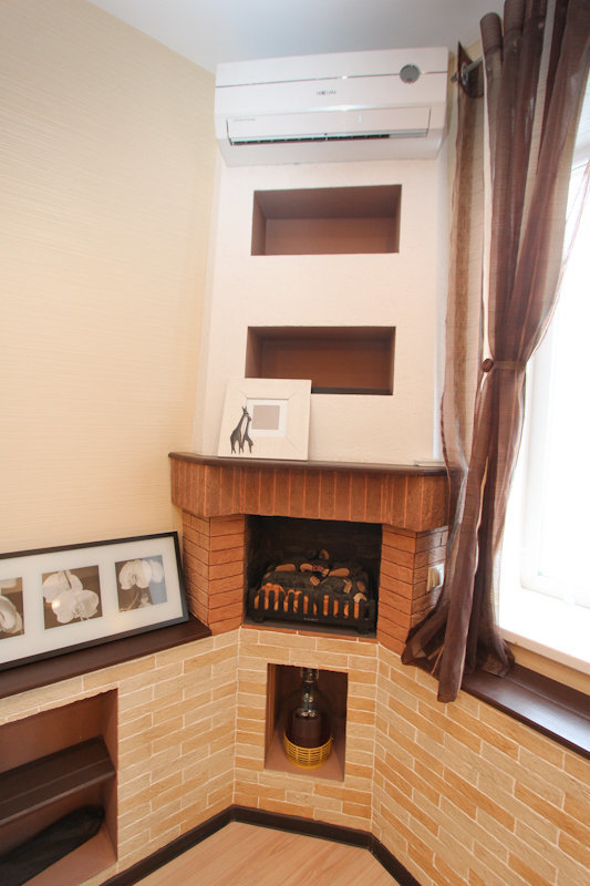 В гостевой комнате смонтирован кондиционер фирмы «Haier» и декоративный электрокамин.