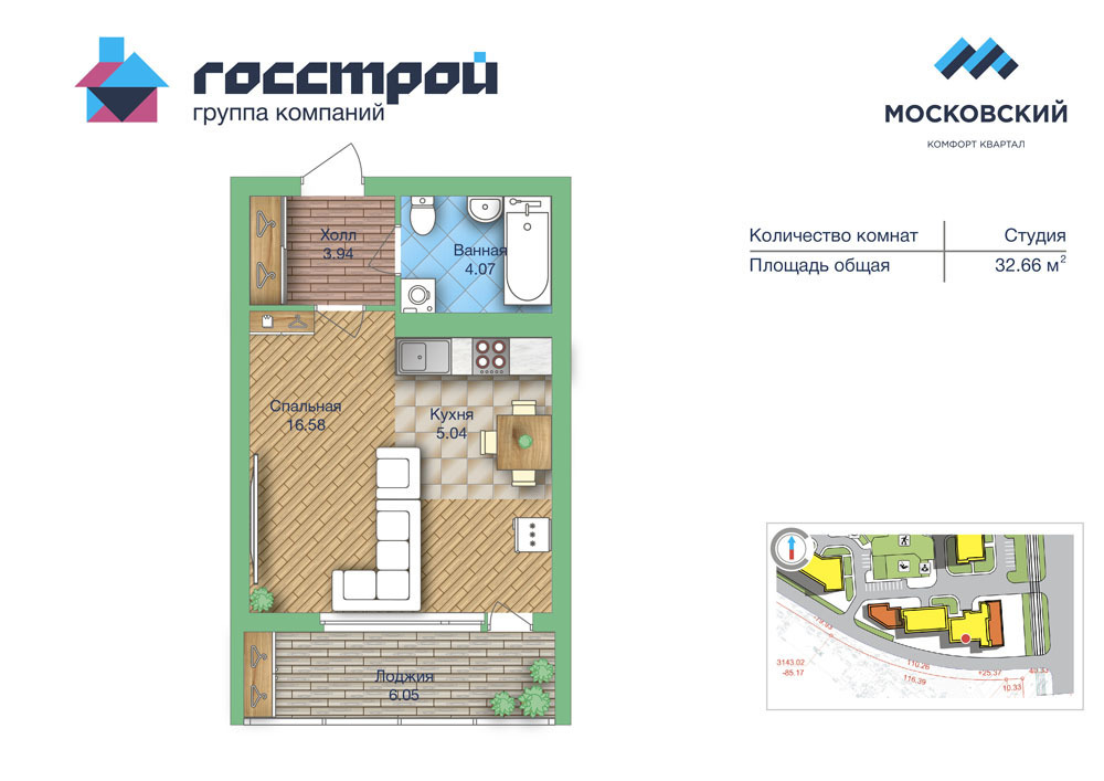 | Дополнительная информация: | Продается 1к.квартира-студия в строящемся доме, ЖК Московский, площадью 32.66 кв.м.Развитая инфраструктура: скоростные лифты KONE. Вентилируемые фасады. Автоматизированная парковка. Колясочные и места хранения спортинвентаря. Дизайнерская отделка мест общего пользования. Консьерж-сервис. Огороженная территория. Видеонаблюдение. Детские игровые зоны. Спортивные площадки топ-уровня. Парковая зона с родниками внутри квартала. Спортивный комплекс с 25-метровым бассейном. Собственная профессиональная управляющая компания.Литер 3. Окончание строительства 4 квартал 2015 года. |