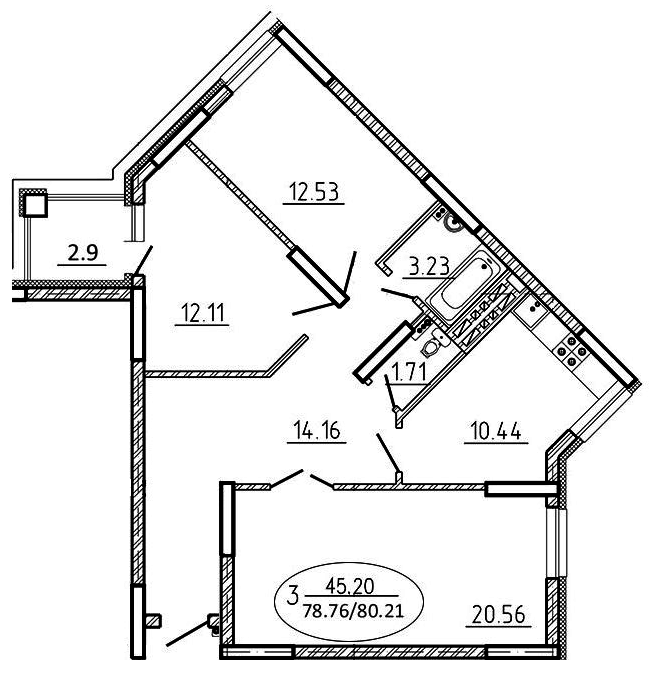 | Площадь кухни: | 10.44 м² |