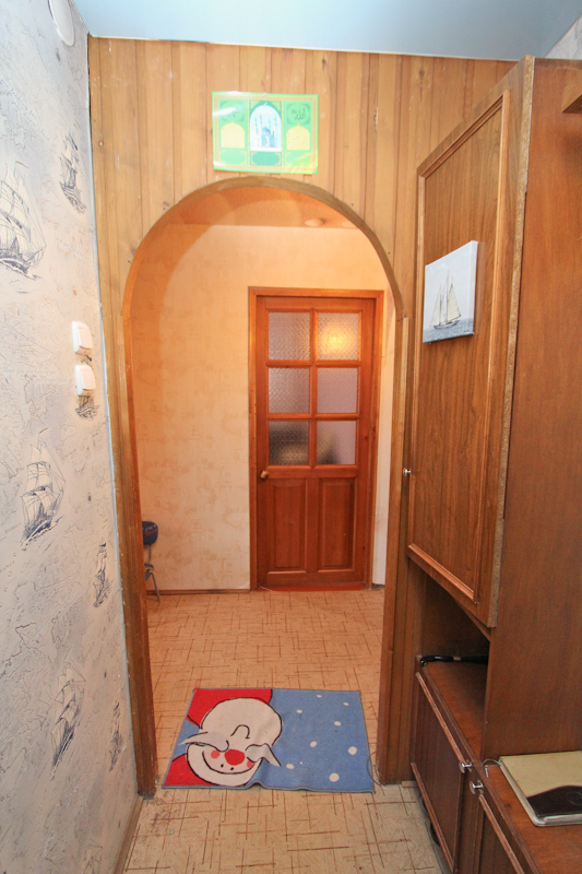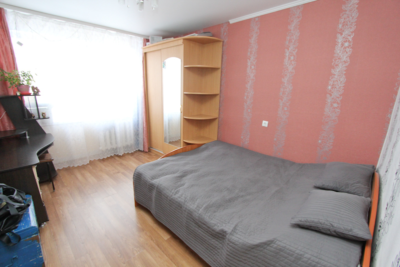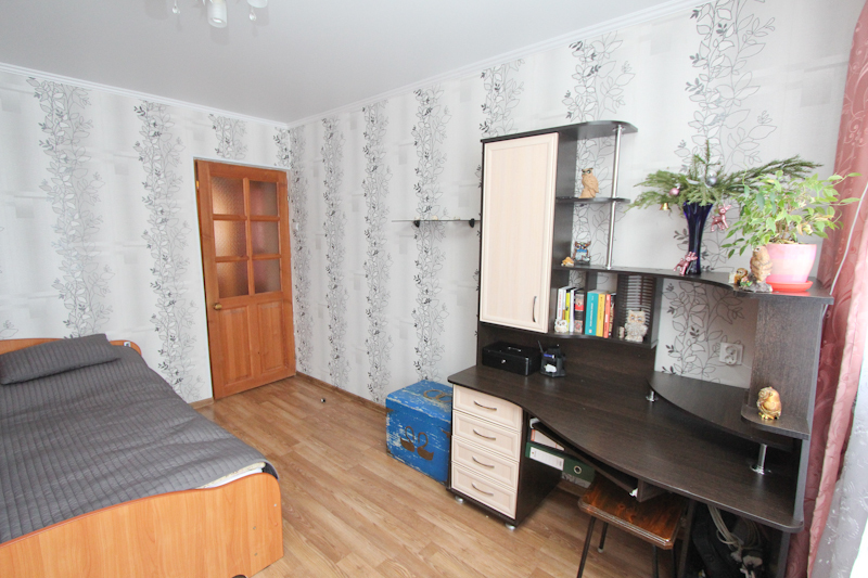 Квартира расположена на четвертом этаже пятиэтажного панельного дома 1987 года постройки. Жилая площадь – 47,2 кв.м., площадь кухни – 5,9 кв.м. Санузел раздельный, квартира без балкона. Окна смотрят во двор, и на гаражи (стороны света запад-восток). Все комнаты изолированы. Детская комната разделена временной перегородкой (для проживания разнополых детишек), которую, при желании, можно убрать.В 2011 году в квартире частично был сделан ремонт: постелен ламинат и линолеум, в гостиной-ДСП, в санузлах выложен кафель, во всех комнатах натянут натяжной потолок и установлены пластиковые окна, поклеены обои хорошего качества. После продажи квартиры на кухне остается кухонный гарнитур и электроплита. Подъезд чистый, аккуратный, соседи адекватные, на площадке 4 квартиры. Капитальный ремонт дома был произведен в 2011 году (меняли трубы, крышу).