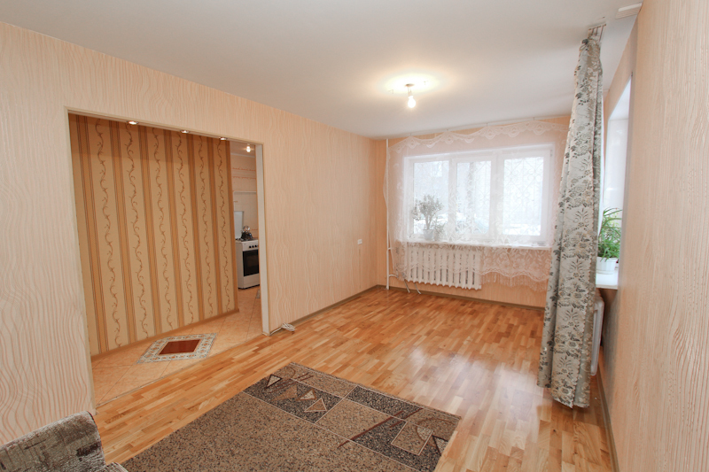 Общая площадь квартиры 30.9 кв.м., жилой площадью 19.1 кв.м., кухня 5.9 кв.м. Квартира расположена на первом этаже, окна выходят во двор и расположены высоко.