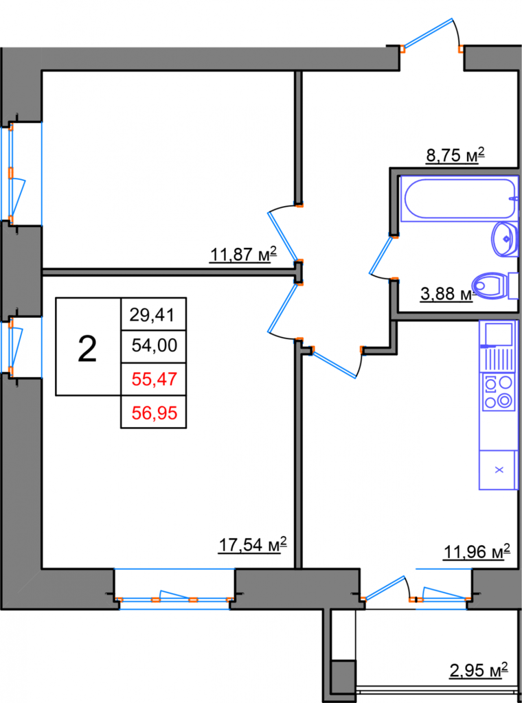 | Количество комнат: | 2 |