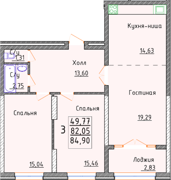 | Площадь кухни: | 14.63 м² |