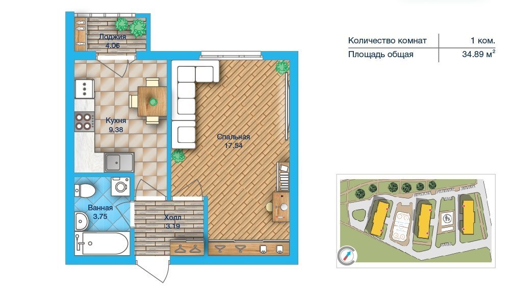 Количество комнат: 1