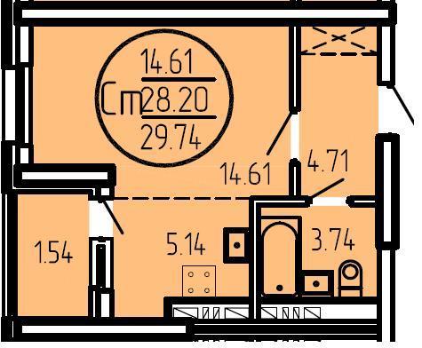 Площадь жилая: 14.61 м²