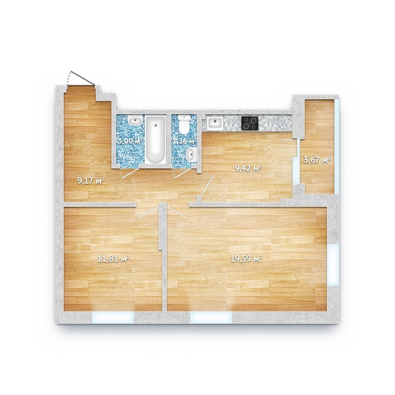 Площадь кухни: 9.42 м²