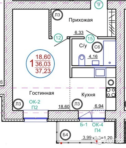 | Площадь кухни: | 6.94 м² |