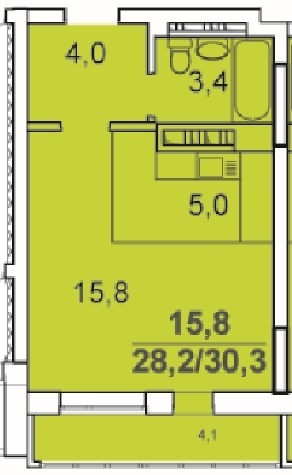 Площадь жилая: 15.8 м²
