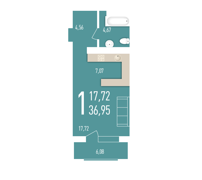 Площадь жилая: 17.72 м²