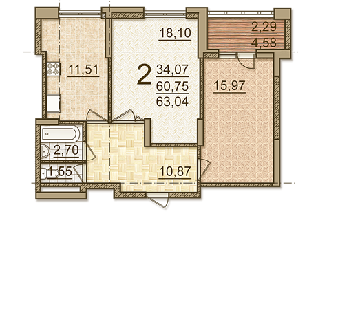 Количество комнат: 2