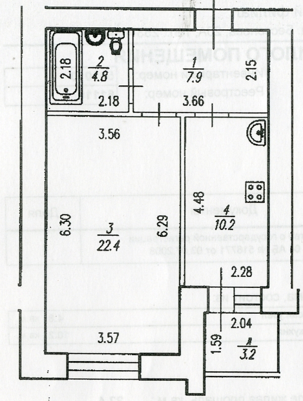 Квартира расположена на 2 этаже 14-этажного кирпичного дома 2005 года постройки, комната 22,4 кв.м., кухня 10,2 кв. м., с/у совмещен 4,8 кв.м., прихожая 7,9 кв.м