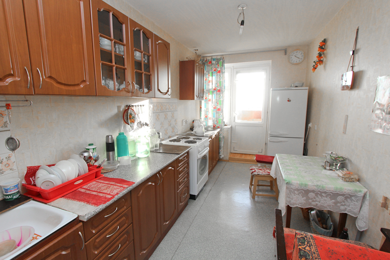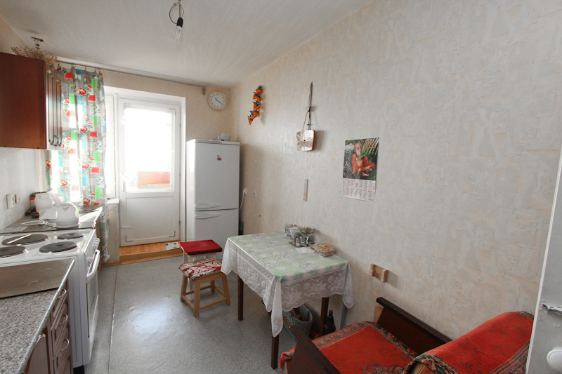 Состояние среднее: лоджия из кухни застеклена, на полу линолеум, новая входная металлическая дверь. Отличный панорамный вид из окна на озеро Кашкадан.