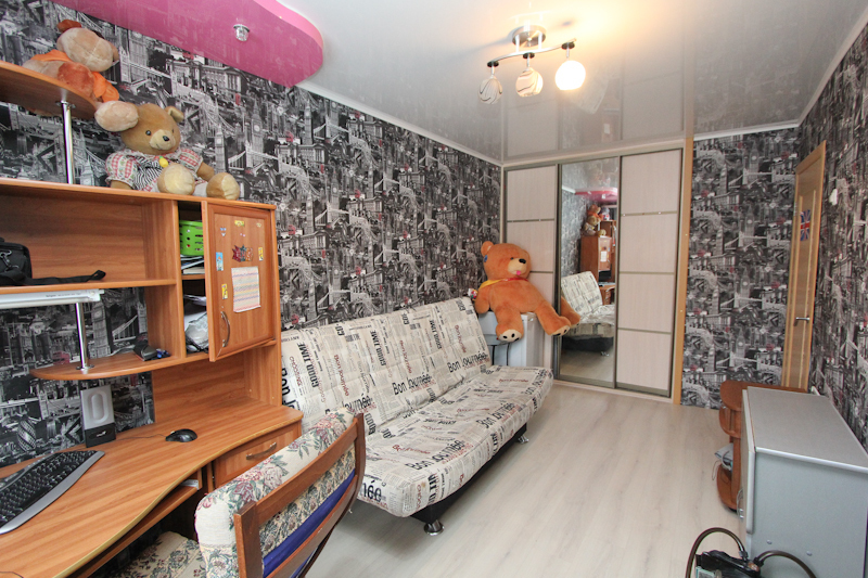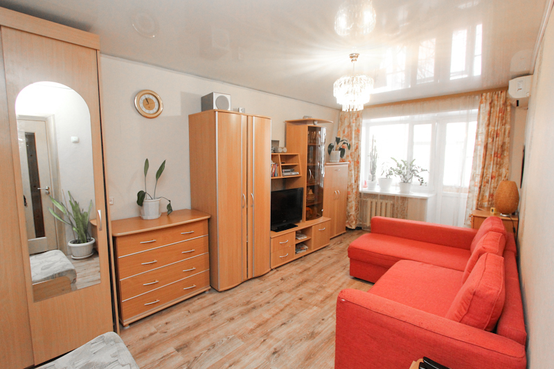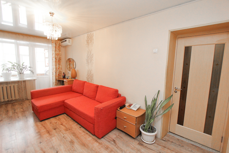 Квартира расположена на 4 этаже пятиэтажного кирпичного дома. Площадь квартиры 44.2/28.9/6 кв. м. Комнаты изолированные. Есть балкон. В квартире выполнен хороший ремонт: качественные обои и линолеум, натяжные потолки, межкомнатные двери, пластиковые окна, в санузле современная плитка и сантехника. Дополнительных вложений не требуется. Остается отличный кухонный гарнитур, вместительный встроенный шкаф-купе в спальне, кондиционер в зале.