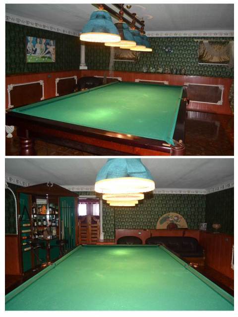 Бассейн (в отдельно стоящем комплексе для отдыха, с панорамным остеклением), бильярдная, спортивная комната с теннисным столом и тренажерами, подсобные комнаты, 2 гаража и навес с кованными воротами на 5-6 автомобилей (в одном из гаражей большие автоматические ворота), земля в собственности 10 соток, участок ухожен. Коммуникации центральные, также есть своя скважина. Продается за 22 млн. руб., в стоимость включена вся мебель и обстановка (все что видно на фото), чистая продажа. |