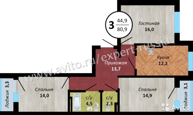 | Количество комнат: | 3 |