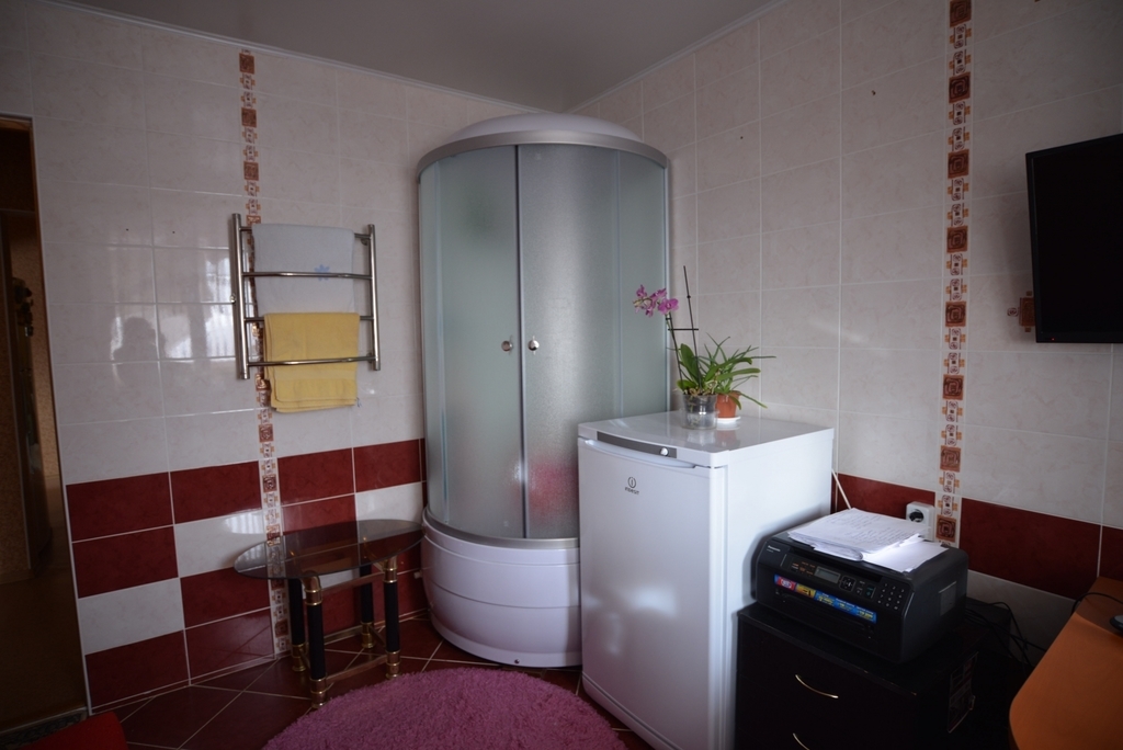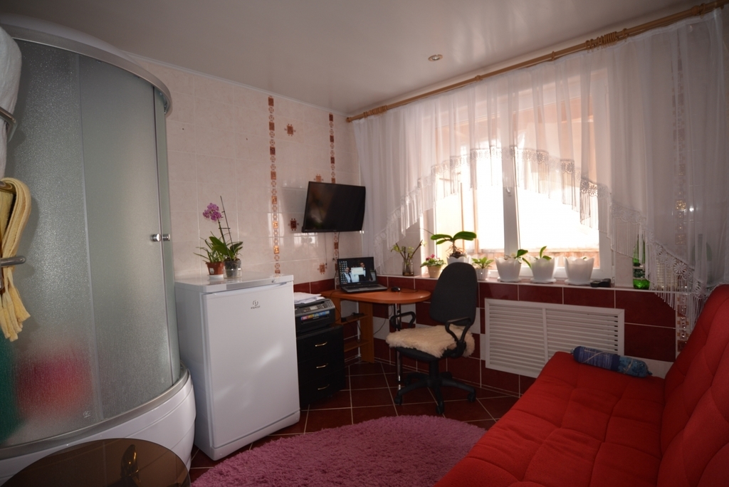 Квартира с евроремонтом. Из спальни имеется выход на полностью застекленную пластиковым стеклопакетом и обшитую евровагонкой лоджию. В подарок остается встроенный шкаф-купе, кухонный гарнитур и душевая кабинка. Санузел раздельный, выложен кафелем, имеет достаточную площадь для установки стиральной машины. Входная дверь повышенной взломоустойчивости. Отдельный тамбур на 2 квартиры, есть большая кладовка. Соседи тихие, доброжелательные. В шаговой доступности новый магазин Табыш, школа, детский сад, лес. Экологически чистый и спокойный район. |