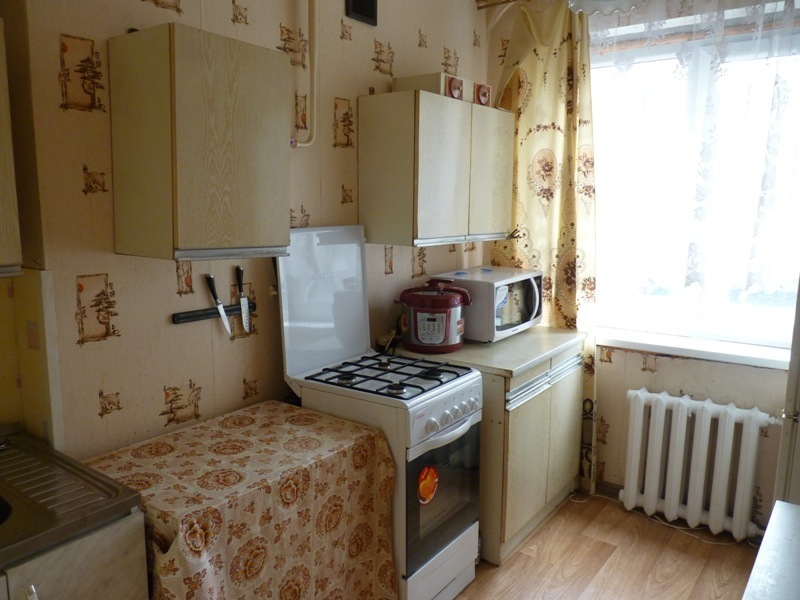 Квартира расположена на 1 этаже девятиэтажного панельного дома. Площадь квартиры 60.2 кв.м., комнаты 2+1 (18.2, 13.8, 12.9 кв.м.), лоджия +погреб 3.6 кв.м. Окна зала, спальни и кухни выходят во двор. Квартира в хорошем состоянии: на кухне и прихожей на полу линолеум, в комнатах – ДВП, пластиковые окна, межкомнатные двери, в ванной и туалете на полу плитка, на стенах плитка и пластиковые панели, новая сантехника, свежие обои. В доме проведен капремонт с заменой всех труб.