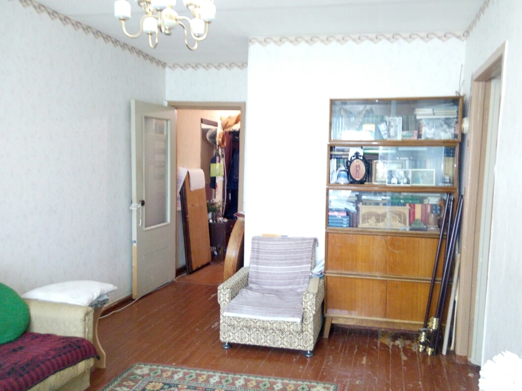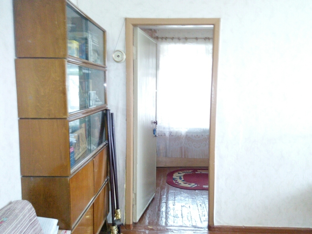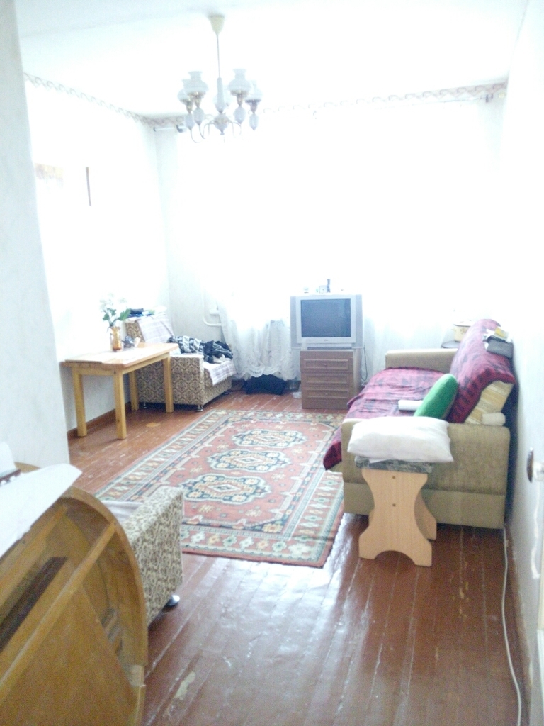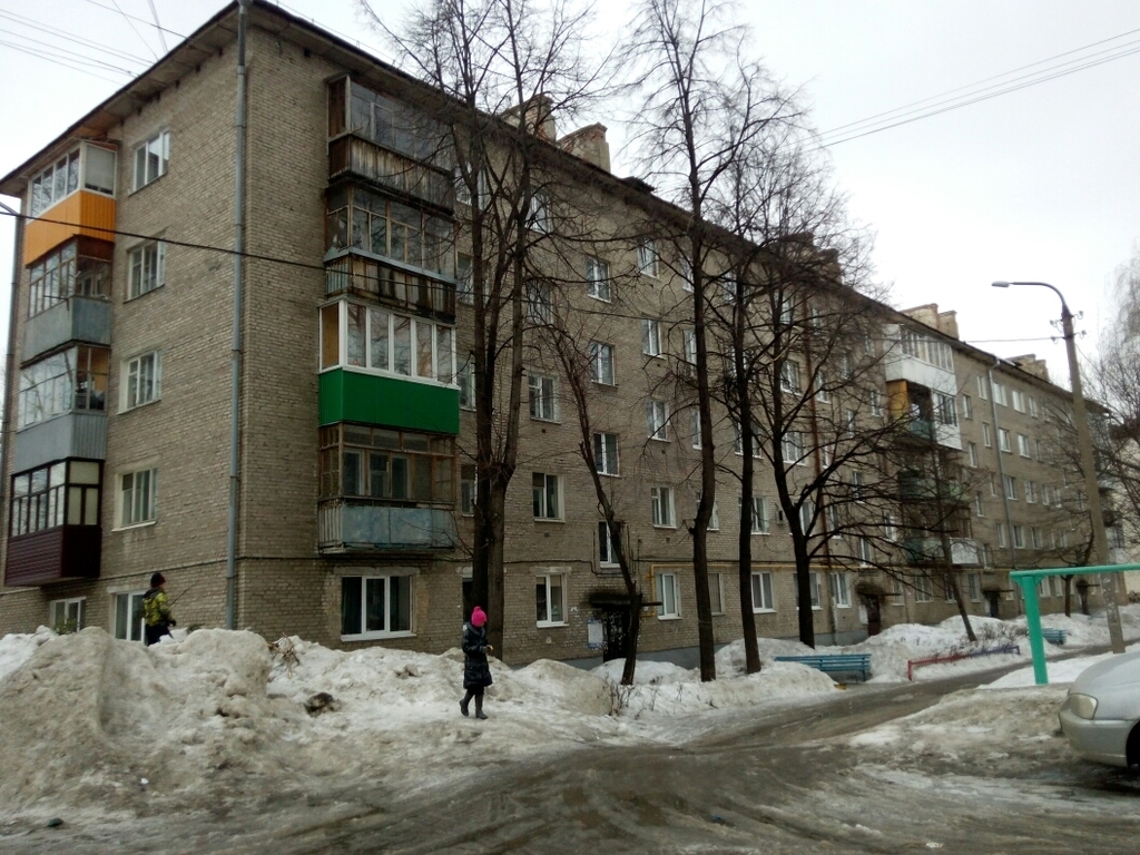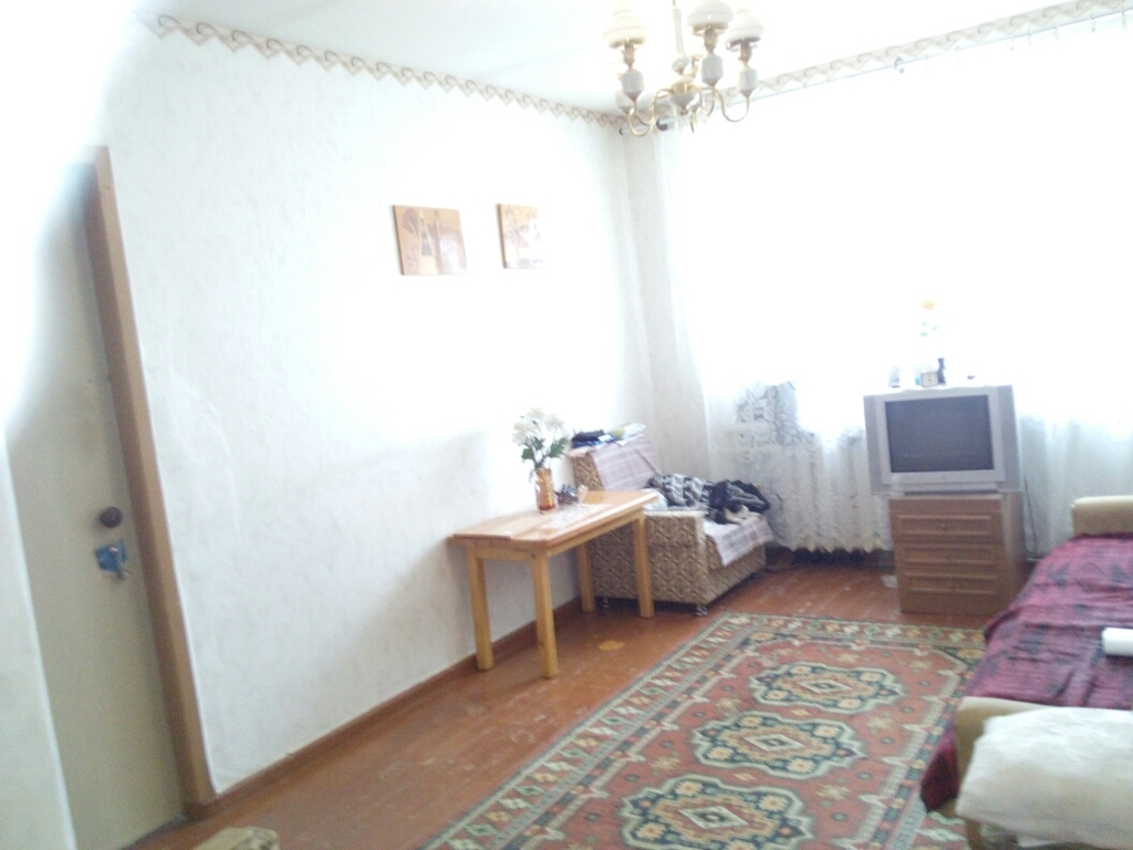 Квартира расположена на четвертом этаже пятиэтажного кирпичного жилого дома 1967 года постройки. Жилая площадь – 34,5 в.м., площадь кухни – 5,7 кв.м. Санузел раздельный, большая прихожая - 6,7кв.м., балкон с выходом из спальни – 3 кв.м. Квартира угловая – окна смотрят все во двор – юго-запад на северо-восток. Гостиная (14,5) и спальня(10,5) смотрят на музыкальную школу. Две комнаты смежные, одна изолированная (9,5), на кухне газовая колонка. Квартира теплая, уютная, в среднем состоянии. Сантехника и входная дверь новые.
