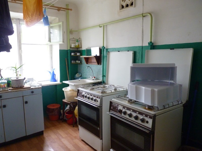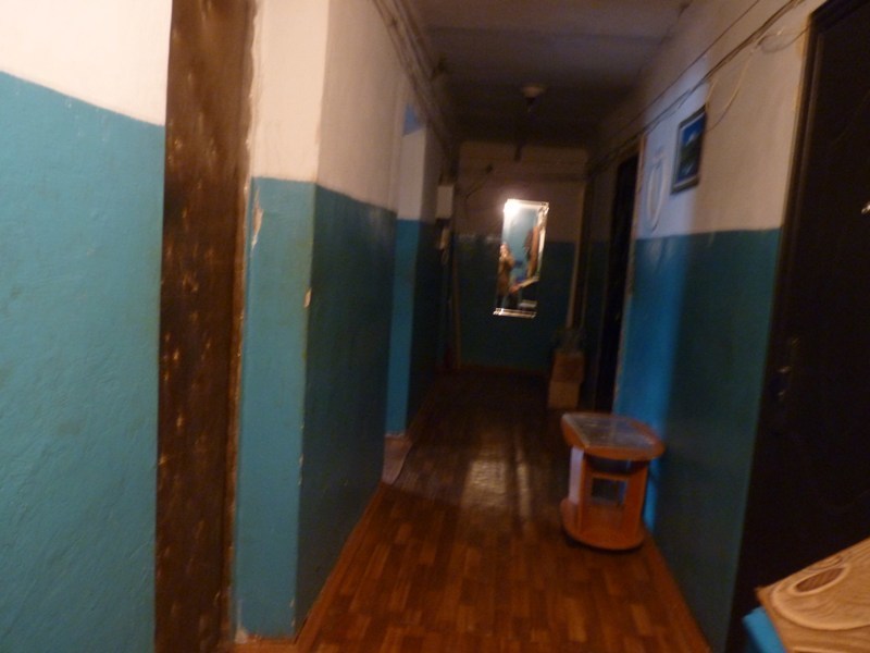 В комнате поставлено новое пластиковое окно. Балкон обшит и застеклен. Санузел раздельный, душевая кабина – общие на соседей. На общей просторной кухне 11 кв.м. свой стол и кладовка.