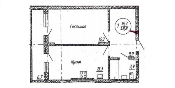 Площадь жилая: 16.3 м²