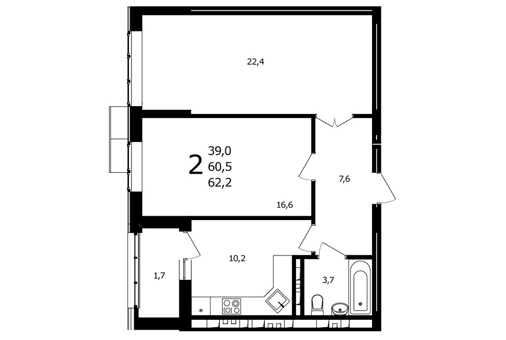 Площадь жилая: 39.0 м²