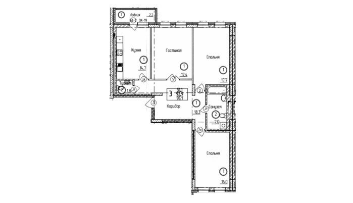 Количество комнат: 3