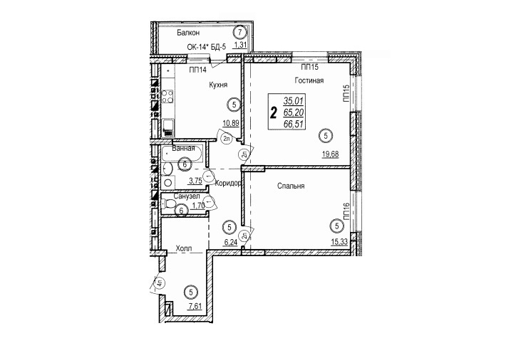 Площадь жилая: 35.01 м²