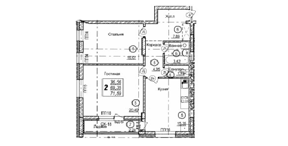 Площадь жилая: 36.56 м²