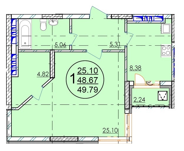 | Площадь жилая: | 25.1 м² |