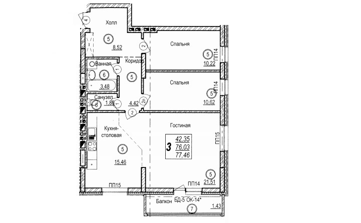 Площадь жилая: 42.35 м²