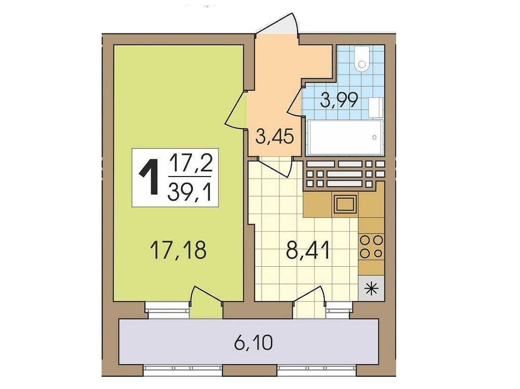 Площадь жилая: 17.2 м²