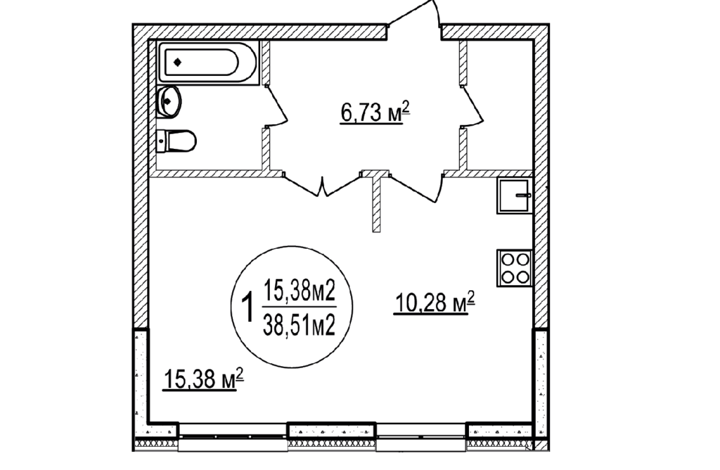 Площадь жилая: 15.38 м²