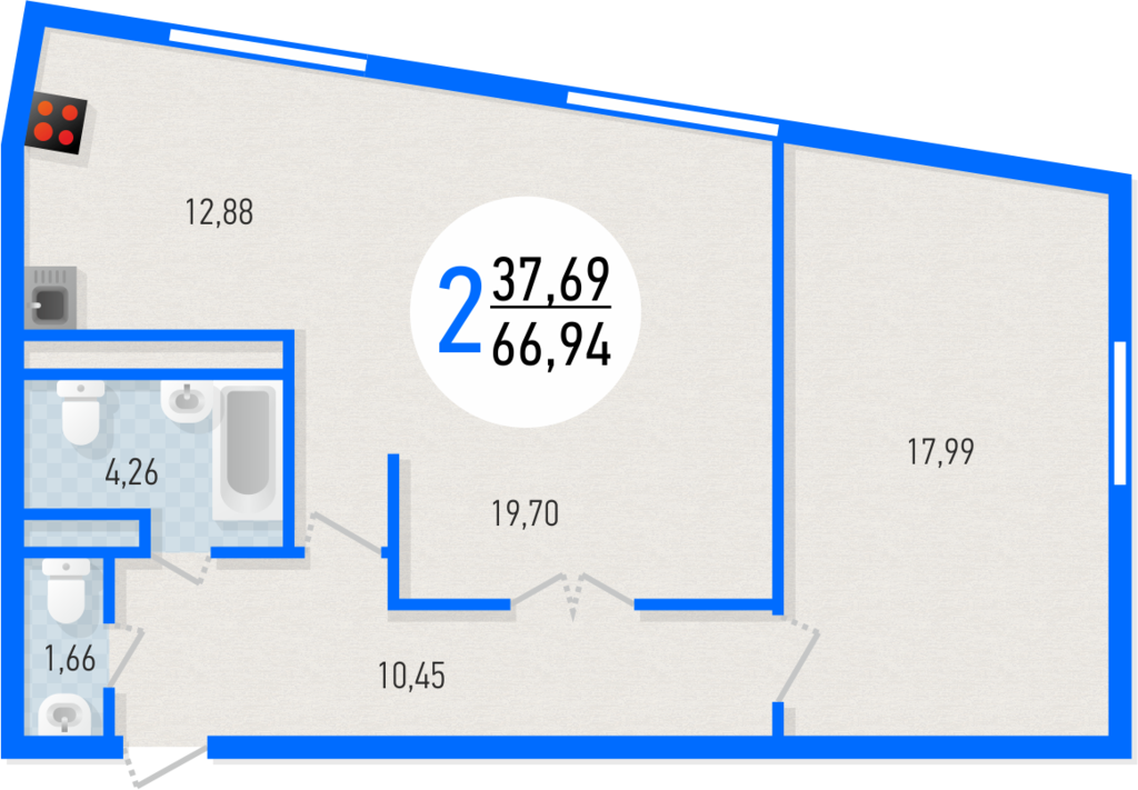 Площадь жилая: 37.69 м²