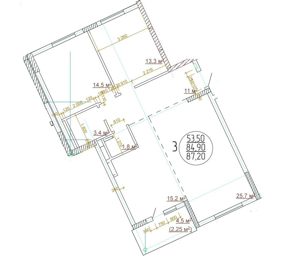 Площадь жилая: 53.5 м²