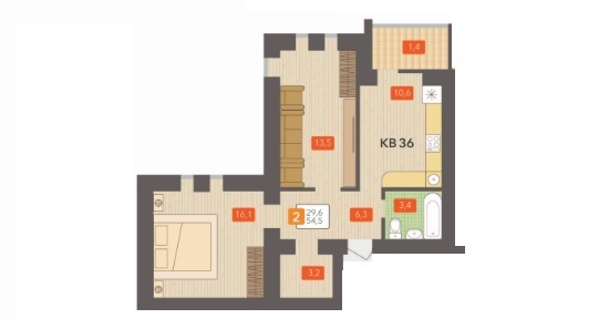 Площадь жилая: 29.6 м²