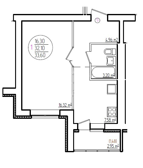 Площадь кухни: 7.58 м²