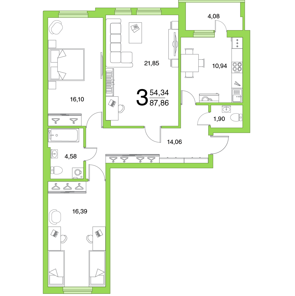 Продается 3-х комнатная квартира в ЖК Сосны. Общая площадь = 87.86, Комната 1 = 16.39, комната 2 = 16.10, Комната 3 = 21.85 , 2 санузла Черновая отделка. Сдача 4 кв 2016 год. Тип дома монолитный. Удобное расположение и подъездные пути. Супер - развитая инфраструктура района. В административно-торговой части эко-парка расположен продуктово-хозяйственный супермаркет, отделение банка, химчистка и ресторан. Около 3000 кв.м. отдано под крупнейший фитнес-центра с бассейном федеральной сети «Х-fit».На территории ведется строительство детского сада на 150 мест. В комплексе предусмотрена высокая степень защиты жильцов и их гостей: круглосуточная охрана и видеонаблюдение на всей территории комплекса. |