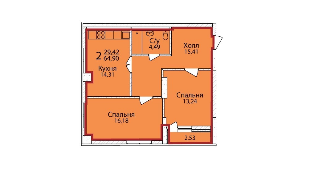 Площадь жилая: 29.42 м²